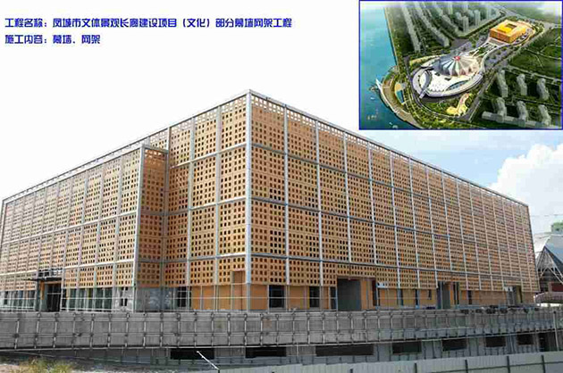 鳳城市文體景觀長(zhǎng)廊由文化部分、體育部分、步行橋及親水平臺(tái)組成。場(chǎng)地南北長(zhǎng)約420米,東西長(zhǎng)為140米,
