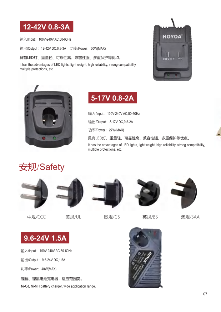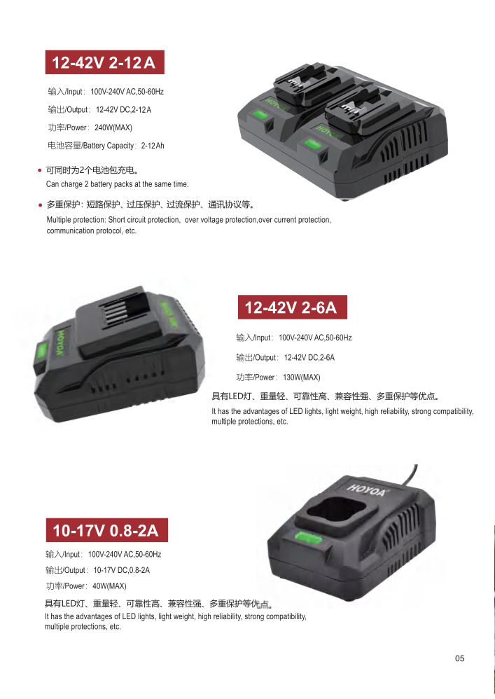 5-42V座充,電流0.8-12A,單充/雙充,詳情請見產品介紹。