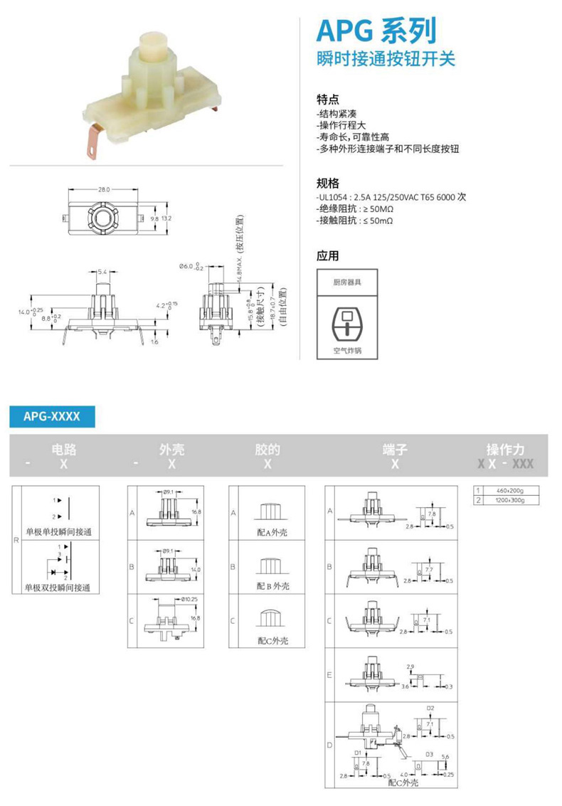 APG是上海攝月電子電器有限公司主營產品之一,公司主要經營德豐品牌開關,產品涵蓋家用電器、電動工具、園林工具等多個市場領域。產品豐富多樣、規格齊全,市場占有率逐年攀升。 了解詳情請聯系021-56665510。