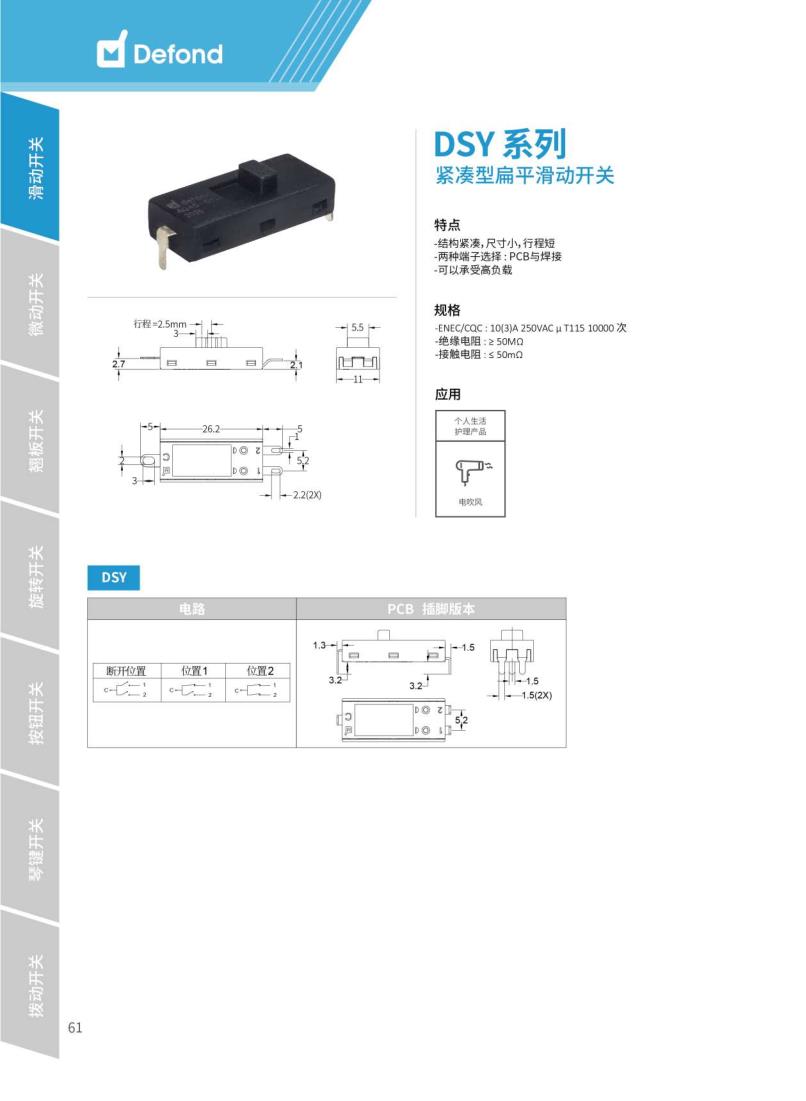 DSY是上海攝月電子電器有限公司主營產品之一,公司多年來助力客戶產品制造和革新,提供整體解決方案,使客戶保持成本和技術的優勢,不斷提高客戶的產品競爭力。了解詳情請聯系021-56665510。