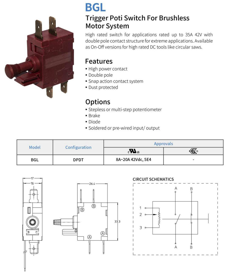 BGL是上海攝月電子電器有限公司主營產品之一,公司主要經營德豐品牌開關,產品涵蓋家用電器、電動工具、園林工具等多個市場領域。產品豐富多樣、規格齊全,市場占有率逐年攀升。 了解詳情請聯系021-56665510。